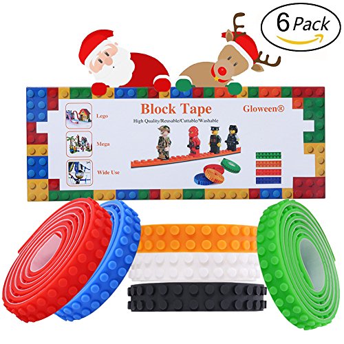 -. Binding : Office Product -. Brand : Gloween -. PackageQuantity : 1 -. ProductGroup : Art and Craft Supply -. ProductTypeName : ART_SUPPLIES -. Title : Upgrade Block Tape,Gloween Compatible Brick Tape for Building Bricks,3.3feet x 0.63inch in Variety Color,Compatible with all Major Brands (Pack of 6)