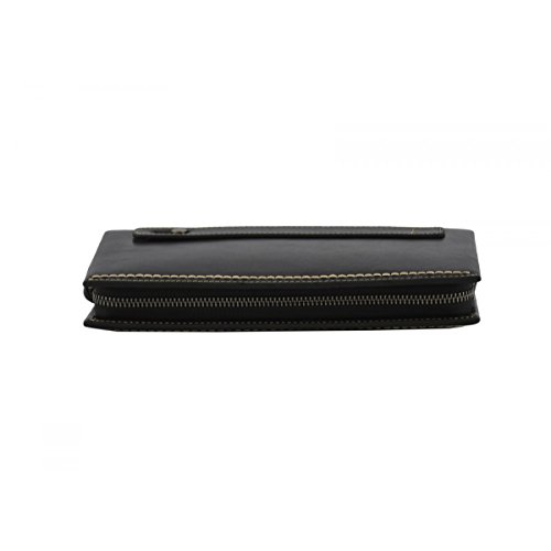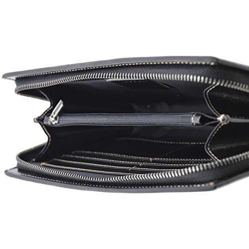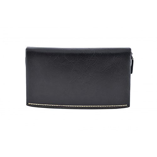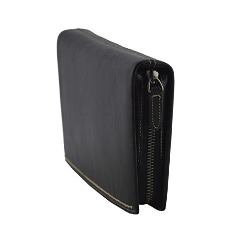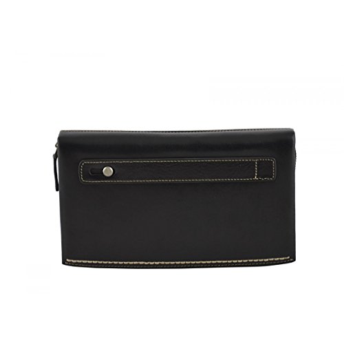 Product Description Genuine Leather Unisex Clutch - Denny Genuine 100% Italian leather clutch. Essential and trendy design, perfect for the man who likes practicality without renouncing elegance. Outside - 100% genuine Italian leather - zip closure - leather band with metal button - leather and metal details Inside - synthetic fabric lining - two separate compartments - central pocket with zip closure - pocket with zip closure - credit card pockets External Dimensions 23 x 3 x 13 cm Weight 0.3 Kg 0
