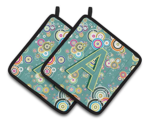 Caroline's Treasures Letter A Circle Teal Initial Alphabet Pair of Pot Holders CJ2015-APTHD, 7.5HX7.5W, Multicolor