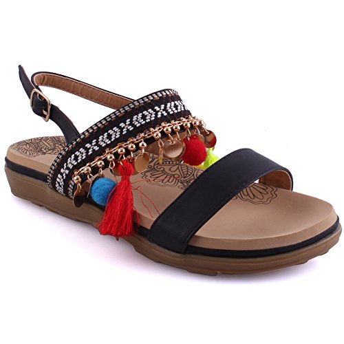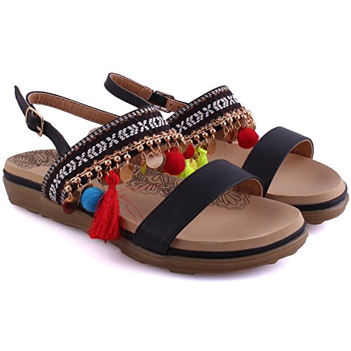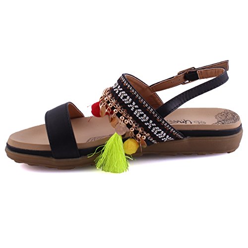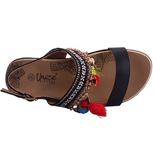 (Unze London)/Women's/Sandals/DIRECT FROM USA/Unze Women ‘Cache’ Embellished Casual Hangout Festival Evening Flat Sandal UK Size 3-8 - 160617-10