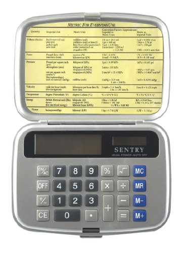 -. Feature : Folding hard protective cover with metric conversion chart / Big eight-digit display / Memory / Solar power with back-upbattery included / Keypad has multi-colored rubber keys