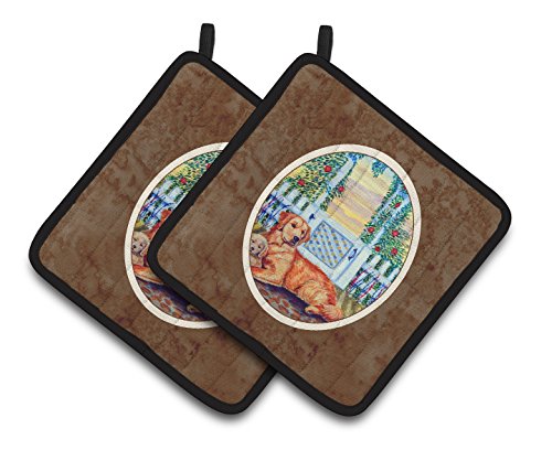 Caroline's Treasures Golden Retriever & Puppy At The Fence Pair of Pot Holders 7148PTHD, 7.5HX7.5W, Multicolor