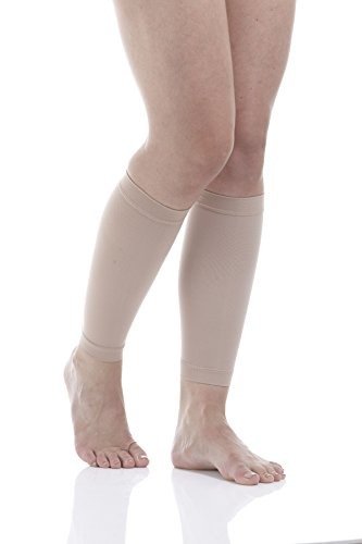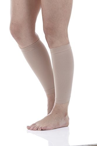 -. Brand : Mojo Compression socks -. Feature : Sold Per Pair ** MULTIPLE SIZES & COLORS ** Mojo Sports Basics Opaque Compression Sleeves provide ankle to- calf graduated Medium compression - 15-20mmHg Support - These help with Shin Splints - Leg Cramping- Muscle Soreness - Moisture wicking Light Weight 2 way stretch material - Comfortable 2 inch top band keeps sleeve in place - / Opaque Microfiber Material **No Foot design Great for Shin Splints and Calf Pain Relief ** improves endurance by boosting blood circulation and delivery of oxygen to your muscles - These are designed to pump blood back up your legs / Super High Quality, Medical grade synthetic materials - 75% nylon and 25% spandex - Sold per pair - Latex Free - Anti-odor and ultra-breathable material. The seamless design means no irritating tags or seams to cause discomfort / Helps to alleviate Shin Splints ** the compression in each pair of leg sleeves helps to improve venous return, increasing blood flow and circulation. This leads to faster muscle recovery time, as muscles receive more of the oxygenated blood they need to recover. It is also good for traveling, at it helps to reduce leg swelling. -. ProductGroup : Health and Beauty -. ProductTypeName : PERSONAL_CARE_APPLIANCE -. Title : Calf Compression Sleeves (Beige Small) Medium Support