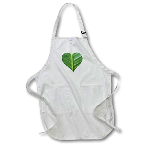 3dRose apr_184879_1 Green Leaf Heart Shape Photo Graphic for Earth Day or Nature Fans Full Length Apron with Pockets, 22 by 30", White