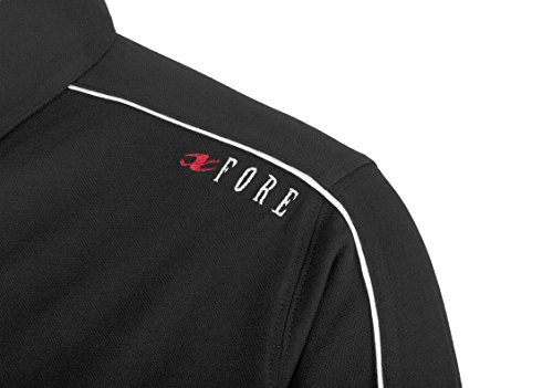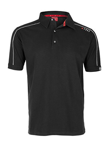 -. Binding : Textilien -. Brand : XFORE Golfwear -. Color : Black -. Department : Herren -. Feature : Kurzarm-Stretch-Poloshirt mit Dreiknopf-Leiste und formgebenden Kontrast Paspelnähten an der Schulter und im Rückteil / Der Kragen, die Knopfleiste und die Ärmelbündchen sind in dem gleichen Material / Eine Stickerei an der linken Schulter, ein silbernes Metallbadge am linken Armabschluss und ein Silikonbadge im Rückteil / Hochwertige leichte Baumwollstretch-Qualität mit feiner Struktur / Made in Europe -. IsAdultProduct : 0 -. ProductGroup : Apparel -. ProductTypeName : SHIRT -. Title : XFORE Golf Herren Kurzarm Poloshirt mit Kontrast, Chicago, in Schwarz