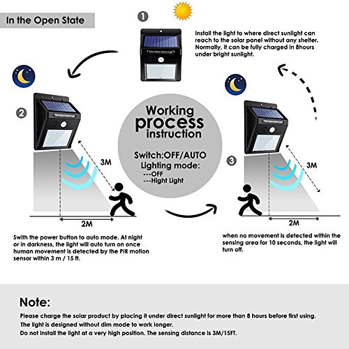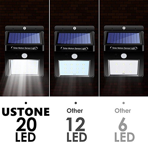 ♥ SUPER BRIGHT: 20 LED Lights are larger than ever before, its brightness is up to 320lm. Approximately the same amount of light as you get with an incandescent light which power is 60watt. Compared to other similar lights,We have updated the solar panel power, thus getting faster battery charging in less sunshine environment