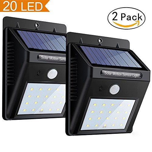 Solar Motion Sensor Light, Super Bright Garden Night Lights, 20 LED Waterproof Wireless Outdoor Powerful Detector LED Security Lights for Yard, Wall, Patio, Deck, Steps (2 Packs)