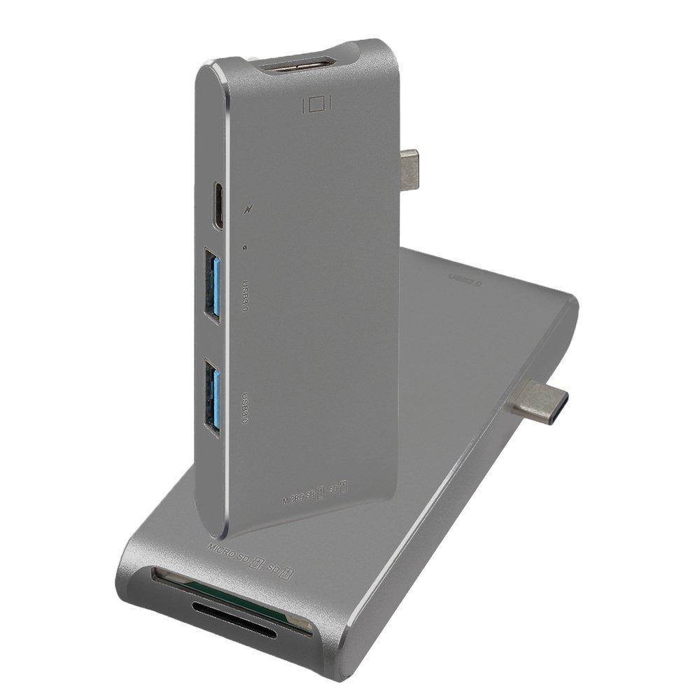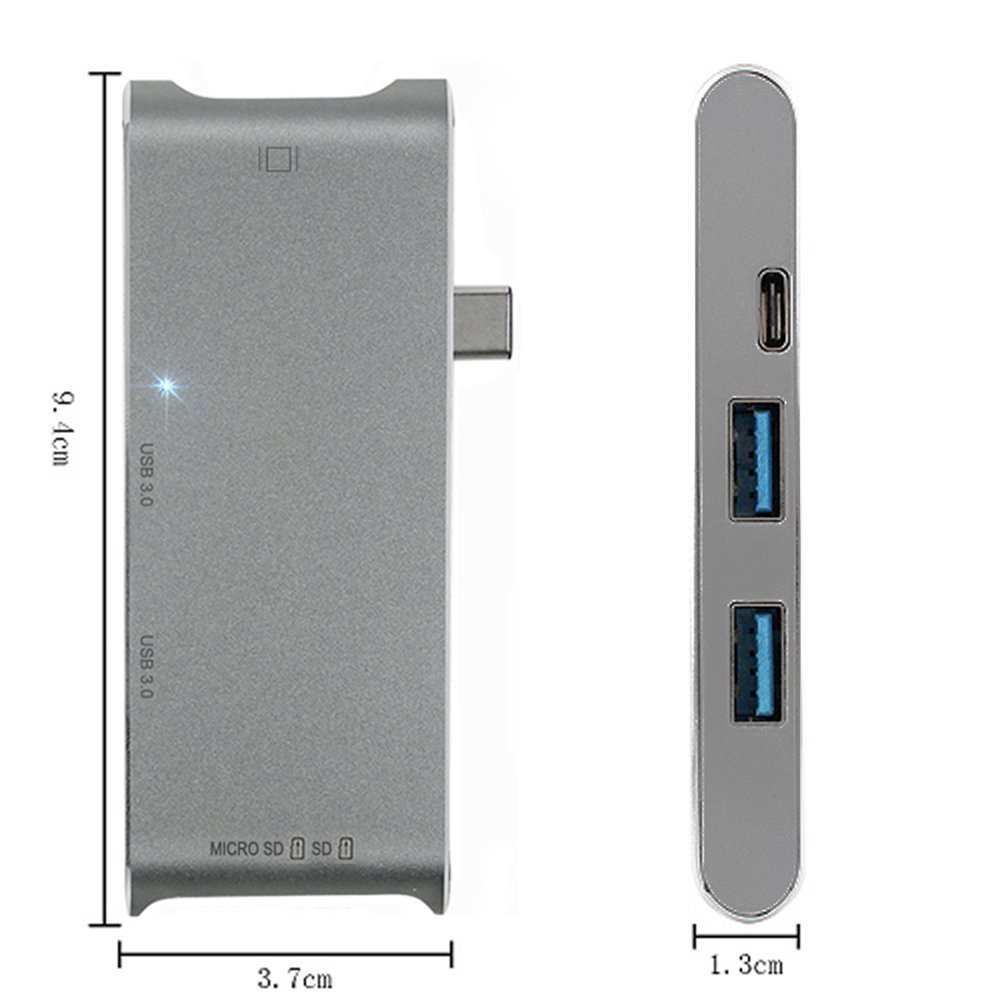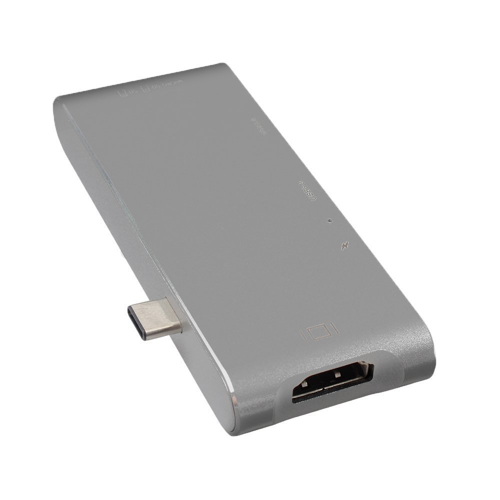 SUPVIN's USB-C hub (Type-C adapter), with one Type-C charging port, HDMI 4K output, two USB 3.0 ports and micro sd / sd card reader slot.