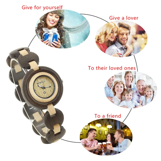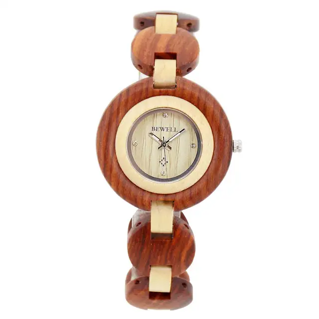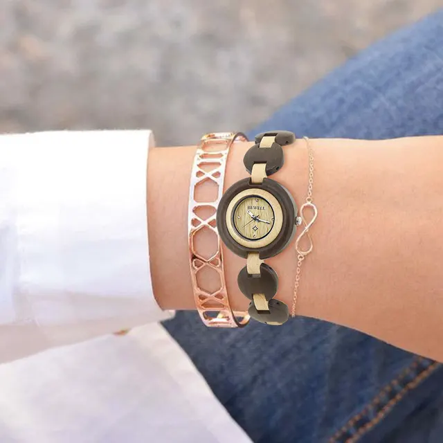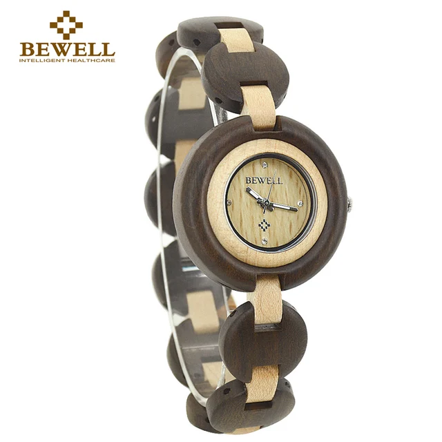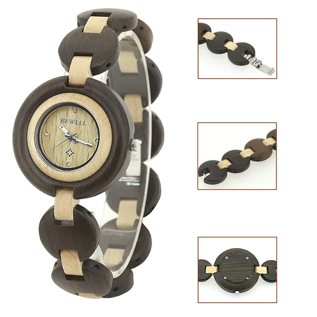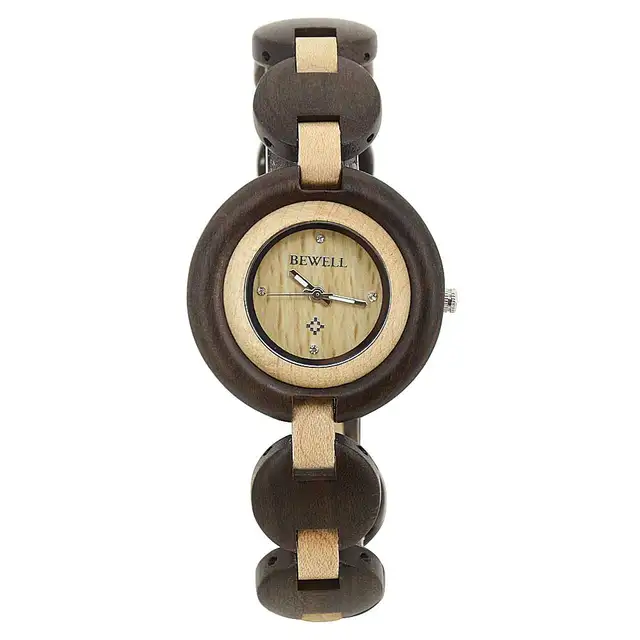 | [해외] BEWELL 블랙 작은 시계 나무 시계 여성 팔찌 시계 독특한 숙녀 석영 손목 시계 유명 브랜드 아날로그 010 |