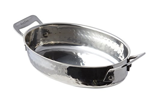Bon Chef 60029HF Stainless Steel Cucina Oval Casserole Dish, Hammered Finish, 36 oz Capacity, 8-1/2" Length x 4-3/4" Width x 2" Height