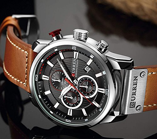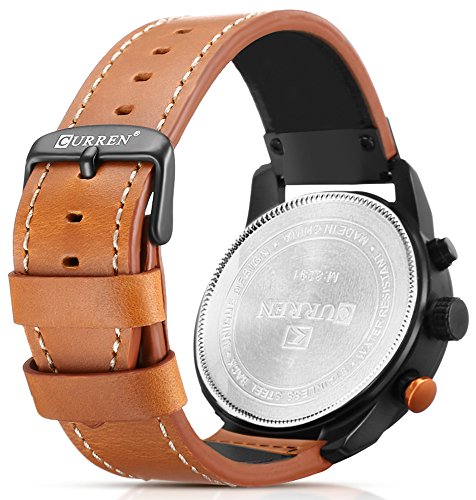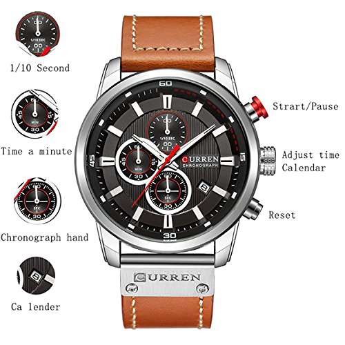 Brand, Seller, or Collection Name:Fanmis Part Number:CR8291g7 Item Shape:Round Dial window material type:Mineral Display Type:Analog Clasp:Buckle Case material:Stainless steel Case diameter:47 millimeters Case Thickness:14 millimeters Band Material:leather Band length:Men's Standard Band width:24 millimeters Band Color:Brown Dial color:Black Calendar:Date Special features:Chronograph, Calendar Movement:Analog quartz Water resistant depth:30 Meters