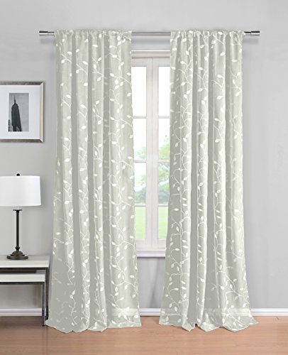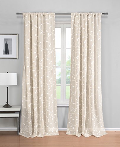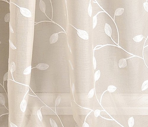 Embroidered leaves add another layer of texture to these linen look panels. Woven fabric lets just enough soft light enter the room.