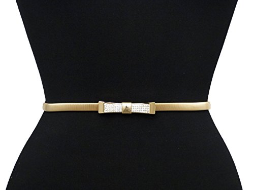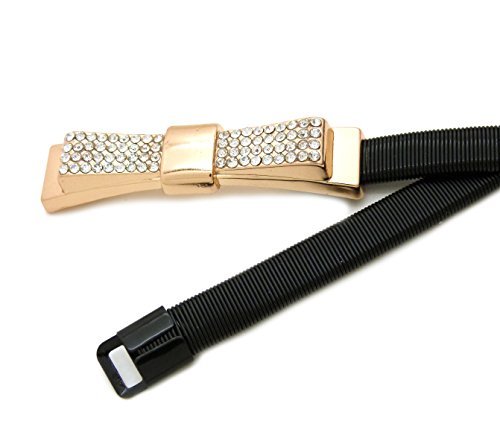 -. Feature : Metal Ribbon Bow Buckle Piece Stretch Waist Chain Belt Gold, Silver, Black Tone / Total Length: 30" (Maximum Stretch out up to 50"), Height: 0.32" / Size of Buckle: 2.6" X 0.6" / Adjustable Size / Dress Belly Chain Belt