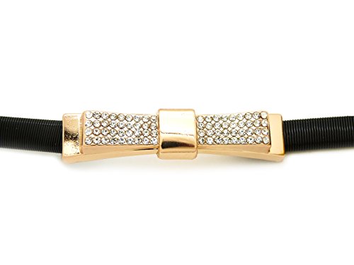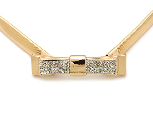 -. Title : Metal Ribbon Bow Buckle Piece Stretch Waist Chain Belt Gold, Silver, Black Tone