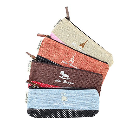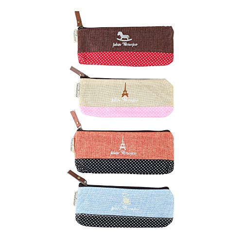 Crystallove 4pcs Simple Cotton School Pen Bag Pencil Pouch Case or Cosmetic Bag for Girls