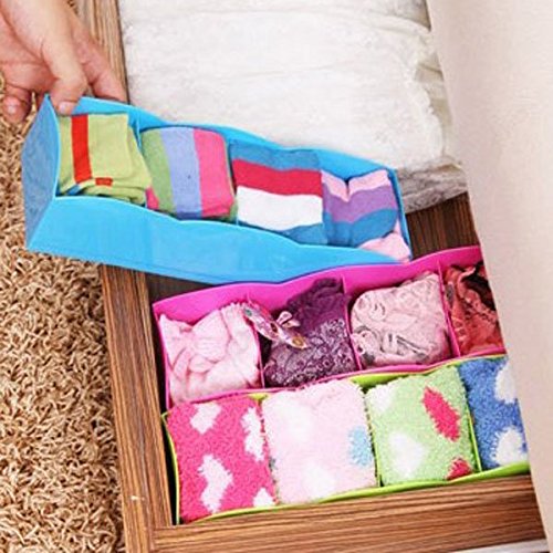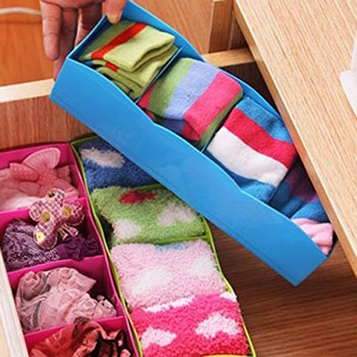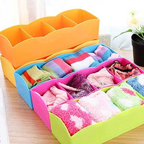 -. Title : 4 Cell Closet Drawer Organizer Space Saving Storage Divider Box Case For Tie Bra Sock ,Random Color