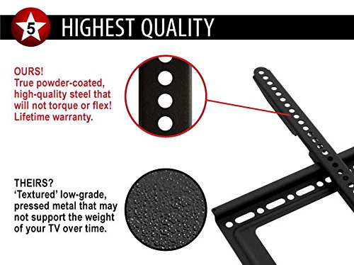 -. Feature : UNIVERSAL COMPATIBILITY: Fits all television brands, and suited for all popular TV sizes from 40" to 65" including 48", 50", 55" & 60" LED LCD HD 4K Plasma Flat Screen TV's (VESA mount patterns: 200 x 200mm to 600 x 800mm) / HEAVY DUTY: High strength powder-coated steel construction supports TV mounting up to 150 lbs. / LOW PROFILE: Flat screen TV wall mount protrudes less than 1 in. from wall. Perfectly suited for TV and monitor mount applications. / STURDY: One-piece, 13-gauge steel backplate / GUARANTEE: 100% money back guarantee, no questions asked. 10-year warranty.