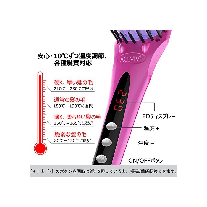 원본상품명: ACEVIVIヘアアイロン ストレト 2in1ブラシ マイナスイオン くし型アイロン 液晶ディスプレイ電熱ブラシ 急速加熱 度調節(80℃~230℃)&ロック (ピンク)