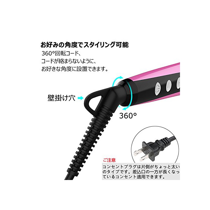 【안전 기능 탑재 화상처 방지】오토 록 기능과 오토 전원OFF기능 첨부 오고, 단열 사양으로 화상을 방지합니다.또한 머리를열에 의한 데미지부터 지킵니다.하드한 움직임에 대응 할 수 있는360°회전 코드로,코드가 휘감기지 않는 바와 같이(하도록),좋아하는 각도로 설치에 옵니다.