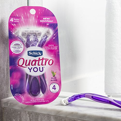 Schick Quattro YOU Exotic Violet Blooms Disposable Razor for Women, 4 Count