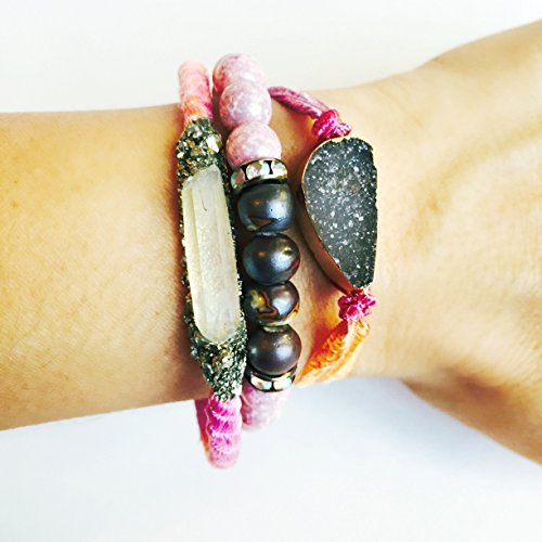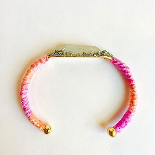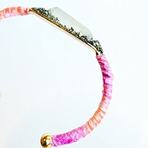 -. Title : 1 Raw Crystal Quartz Pyrite Gold cuff bracelet with Silk Ombre Ribbon