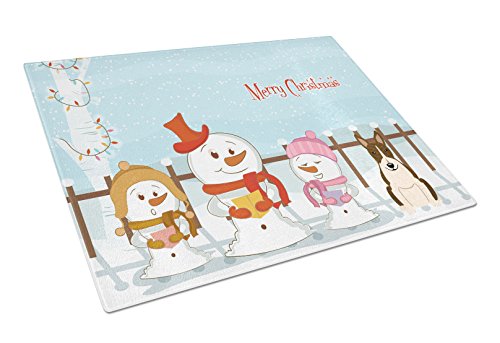 Caroline's Treasures BB2467LCB Merry Christmas Carolers Bull Terrier Dark Brindle Glass Cutting Board, Large, Multicolor