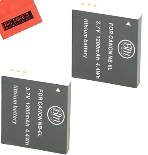 Includes Qty 2 NB6L 1200mah Batteries + Micro Fiber Cleaning Cloth
