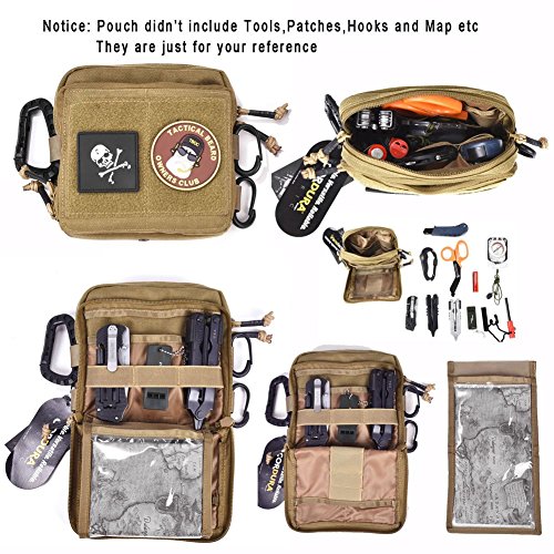 -. Binding : Misc. -. Brand : REEBOW GEAR -. EAN : 0701936675583 -. Feature : The molle admin pouch's size is approx.6.5"*6.5"*1.75"(W*H*D). Made of top material 1000D Cordura waterproof nylon,lightweight and durable / The admin pouch didn't include malice clips,you can use it with your malice clips as compact EDC tactical gear molle utility gadget storage pouch bag pouches organizer / This EDC Molle tactical pouch has removable clear map cover pouch to protect your map when you travel hiking camping etc outdoor sport / The molle pouch was designed as EMT First Aid pouch bag army military small edc tool gadget medic storage molle gear pouch bags pouches / Pouch can store small edc tactical tool multitool compass pens flashlight map knife cell interphone phone notebook etc many edc stuff, it's great for a tactical chest rig and addtion to Gearslinger. -. IsAutographed : 0 -. IsMemorabilia : 0 -. Label : REEBOW GEAR -. Manufacturer : REEBOW GEAR -. NumberOfItems : 1 -. PackageQuantity : 1 -. ProductGroup : Sports -. ProductTypeName : SPORTING_GOODS -. Publisher : REEBOW GEAR -. Studio : REEBOW GEAR -. Title : Reebow Gear Tactical Admin Pouch EDC Molle Military Bag Organizer Tan -. UPC : 701936675583