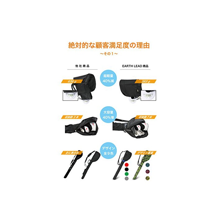 【 380g의 경량 설계 최대7책의대 용량 】타사의 640g의 클럽 케이스 에 대해서,EARTH LEAD의 클럽 케이스는 불과 380g.내구성은 그대로 중량을 40%삭감했습니다.클럽 케이스 자체가 경량 (이므로)그래서 6개 수납해도 경량으로 운반도 악?!드라이버와 아이언,우드 등 연습 하고 싶은 클럽만 를 가지고 치기 ## 없음이나 레슨 등의 연습으로 갈 수 있습니다.무거운 캐디 백을 자택이나 연습장부터 주차장까지 운반할 필요가 없는 때문에,휴일의 연습장에 마음이 내키지 않았던 분(쪽,편)나 여성도 부담없이 연습으로 갈 수 있습니다. . .