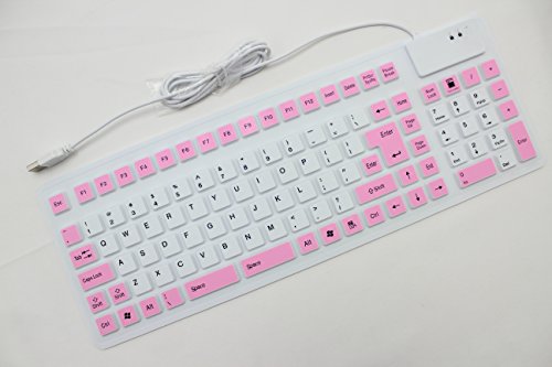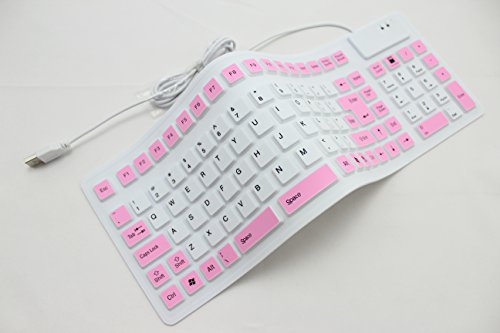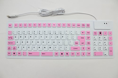 105 Keys Roll up Soft Silicone Folding Flexible USB 2.0 Silicone Keyboard for PC Laptop (Pink)