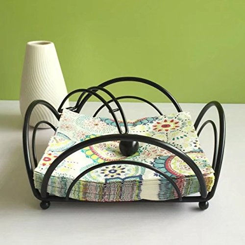 -. Feature : Metal napkin holder, black color, beautiful way to display napkins. / Retro and classic design, upper movable metal ball keeps napkins in place. / Fits for 3.9 to 6.7 inch napkins, special base structure prevent napkins from wet and dirty. / Base with four small metal balls make the product more beautiful, maintain a certain distance between napkin and table. / Not only a napkin holder for home, restaurant, cafe and dining room, but also a vintage decoration, perfect house warming gift.