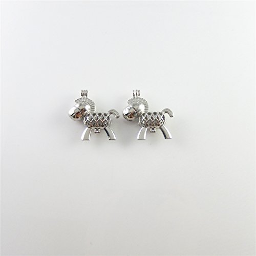 JulieWang 10pcs Anitqued Silver Small Tiny Locket for Aromatherapy Essential Oil Diffuser Pendant Bead Cage Charms Donkey Animal