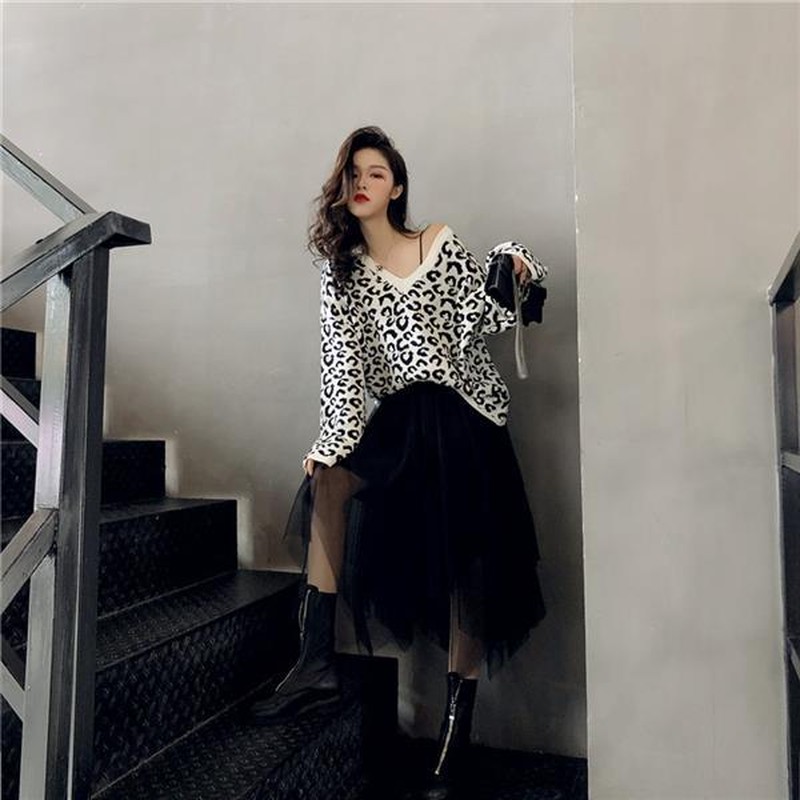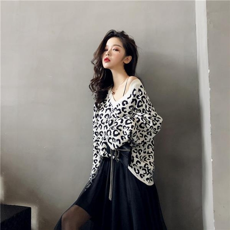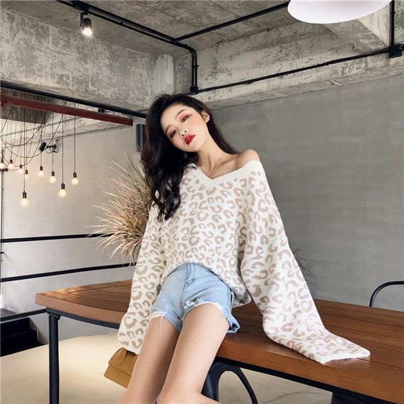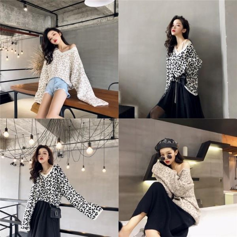 ♢ポイント♢ ヒョウ柄の可愛いVネック長袖トップスです。 広めのVネックでデコルテをキレイに演出します♪