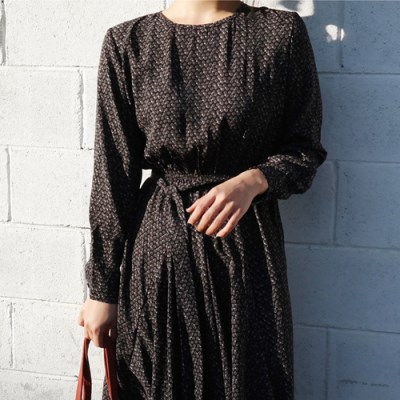 언발란스로 떨어지는 실루엣의 롱원피스예요. 정말 롱한 길이감인데, 168cm 모델이 착용했을 때 종아리를 다 덮는 기장감이예요. 아마 아담하신분들보다는 키가 어느정도 있으신분들께 추천해드리고 싶어요!