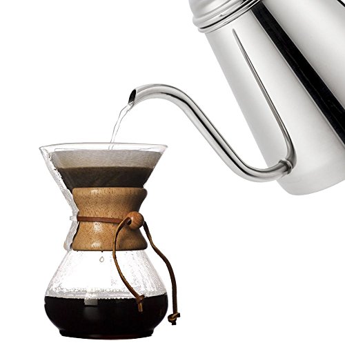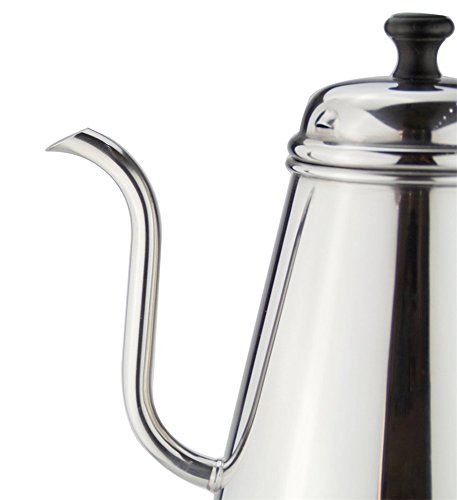 The stainless steel kettle features an improved, thinner spout which allows for exquisite control over the flow of water.