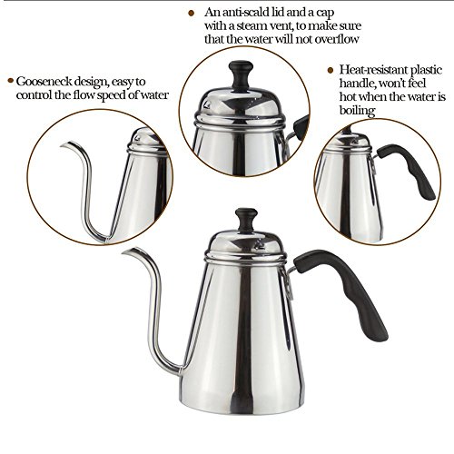 -Precision flow rate-Narrow spout and gooseneck curve allows precise control when pouring.without creating drips and messes.