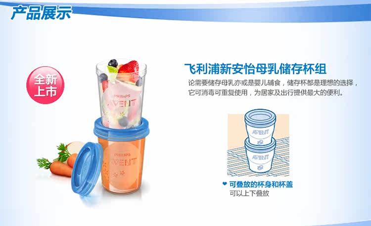 ? ? ? ? ? ? ? ??飞利浦新安怡储存杯组是一款节约空间的多功能母乳储存杯组,能够完全满足宝宝的成长所需。使用同一个杯子为宝宝来存储母乳以及婴儿食物。适用于所有飞利浦新安怡吸乳器和奶嘴。