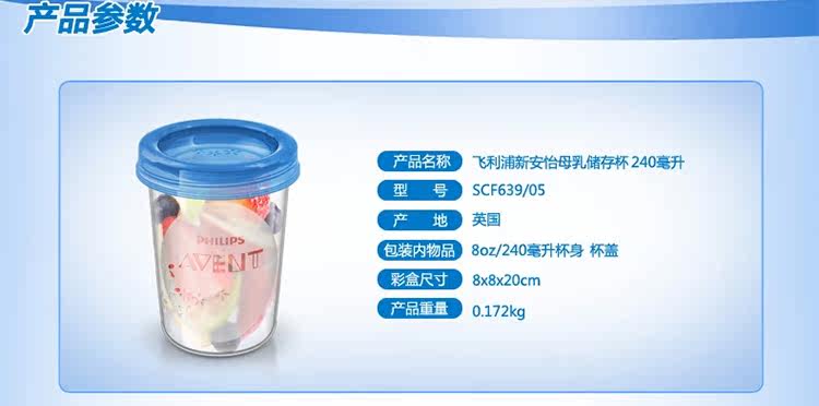名称:母乳储存杯(240ml)(可用于盛放宝宝固体辅食)