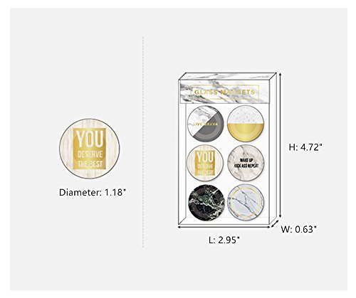 3. Totally 6 magnets per pack with 6 different pattern on them, the diameter of each is 30mm (1.18") and thickness is 8.5mm (0.33")