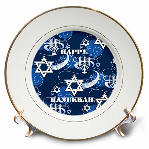 3dRose cp_61930_1 Happy Chanukah with Menorah N Star of David Porcelain Plate, 8-Inch