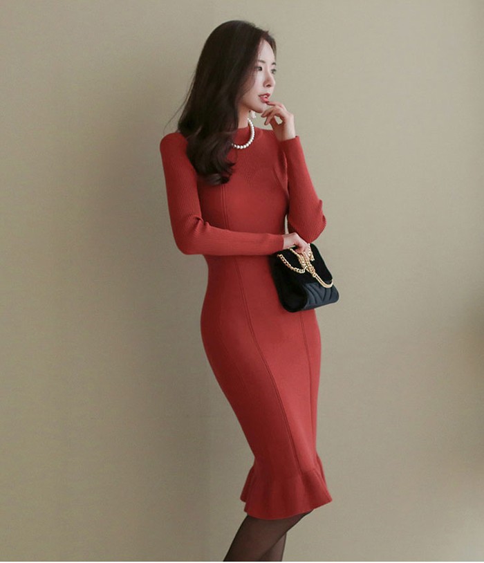商品名:ワンピース ニット タイトワンピース 無地