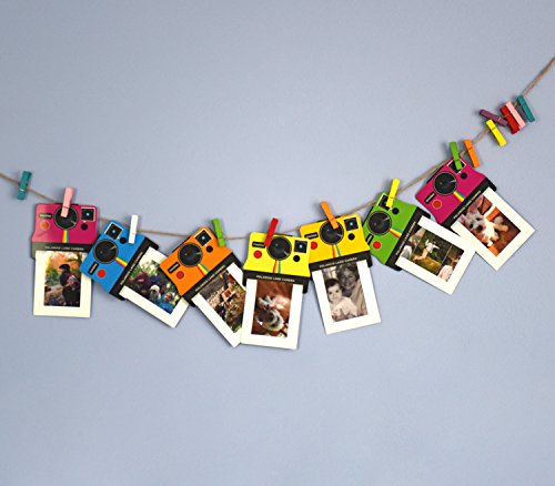 Colorful creations come alive in seconds. Choose from 8 colors of paper photo frames, and use one of the colored magnetic clothespins to hang the masterpiece from the included twine or affix to your fridge.