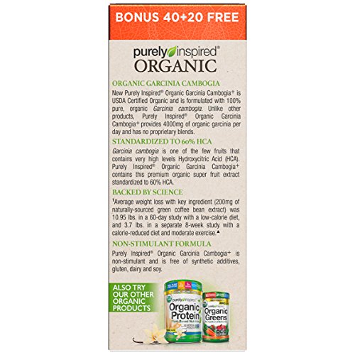 Product DescriptionNew Purely Inspired Organic Garcinia Cambogia is USDA Certified Organic and is formulated with 100% pure, organic Garcinia cambogia.0