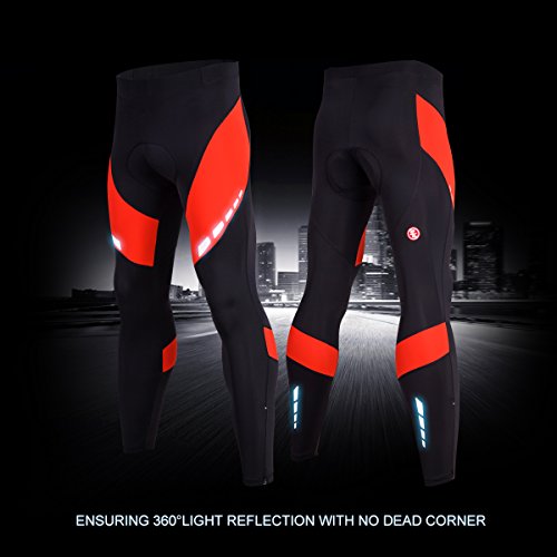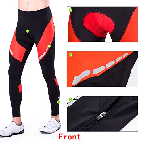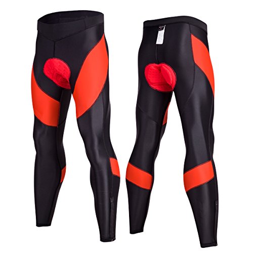Men's 4D Padded Cycling Tights Long Bicycle Pants Ourdoor Clothes Bike Wear (Red, L 29"-36")