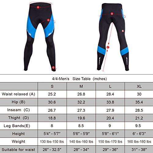 Men's 4D Padded Cycling Tights Long Bicycle Pants Ourdoor Clothes Bike Wear (Blue, S 26"-32.5")