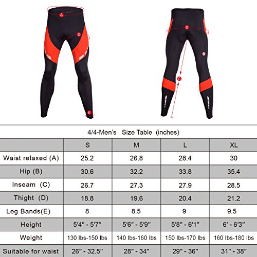 Men's 4D Padded Cycling Tights Long Bicycle Pants Ourdoor Clothes Bike Wear (Red, S 26"-32.5")