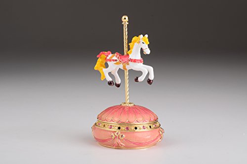 Pink Faberge Egg with Royal Horse Handmade Trinket Box Swarovski Crystals