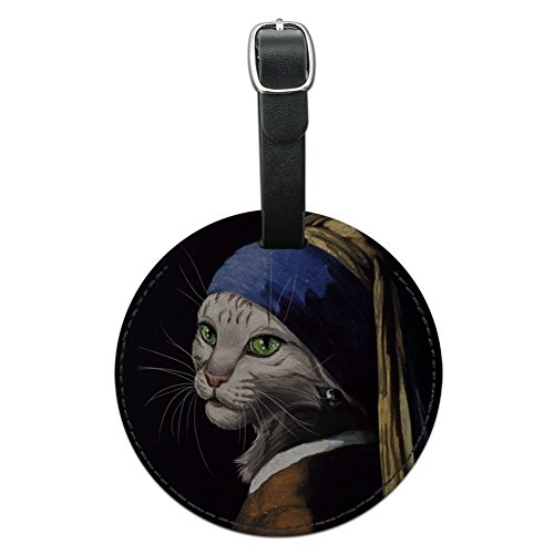 Product Description This is an awesome leather luggage tag that will set your luggage apart in style. The tag is made of black leather and the design shown is printed on one side with special inks. A card for your address information (included) slips inside and is protected by a clear vinyl window. The tag is approximately 4.0" (10.2cm) in diameter. A leather strap is also included. Sold individually. 0