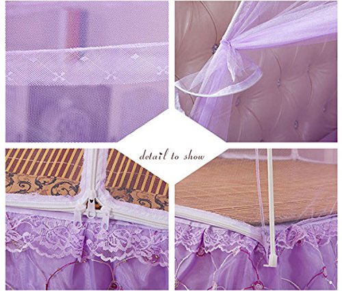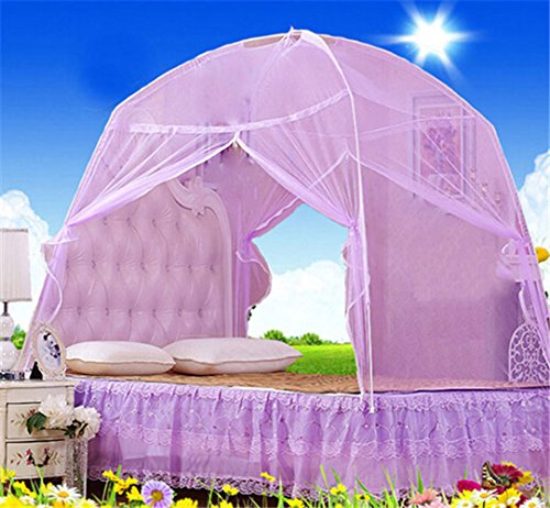 CdyBox Foldable Baby Adult Double Zipper Door Sleeping Yurt Mosquito Net Bed Canopy with Stand (L, Purple)
