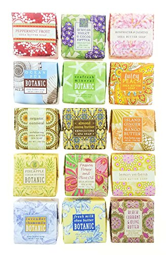 15 SCENTS: African Violet, Passion Flower, Fresh Milk and Shea, Black Currant, Island Ginger Mango, Ocean Pur, Seafresh Mineral, Lavender Chamomile, Peppermint Frost, Pineapple Cocoa, Almond, Rosewater Jasmine, Lemon Verbena, Organic Oatmeal and Juicy Peach